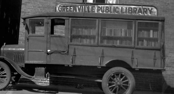 On October 10, 1923, a new Library service was unveiled to the public. Known as the Pathfinder, this truck loaded up with library materials was the first ever bookmobile in the South and was created to meet the needs of Greenville’s mill communities. By January of 1924, the Pathfinder was on the road providing service to the Parker District, and by 1927, expanded its travels to the Travelers Rest area and other rural parts of Greenville County. At the height of the community’s need for this service, there were four bookmobiles making nearly 100 stops. (Image from the South Carolina Room Collection)