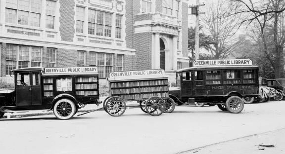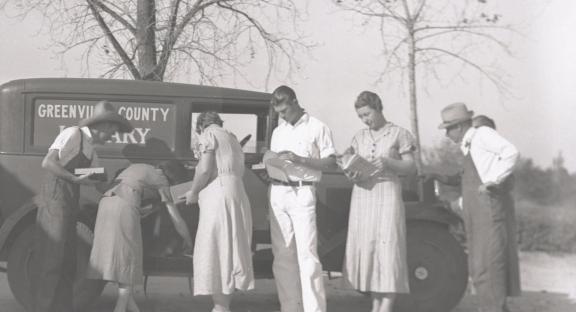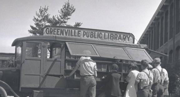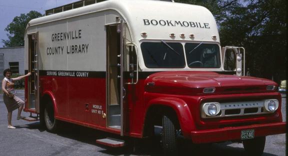 Greenville County was the home of the South’s first bookmobile, which served both white and African American schools & communities. (Image from the South Carolina Room Collection)