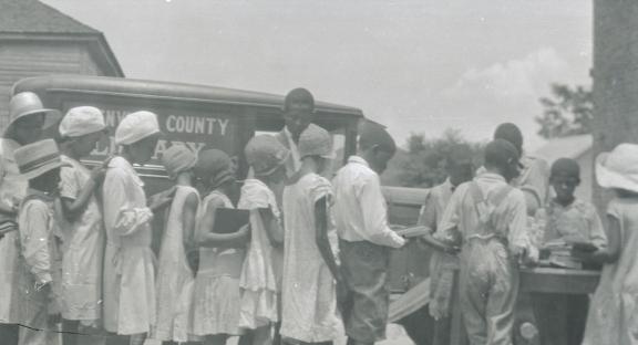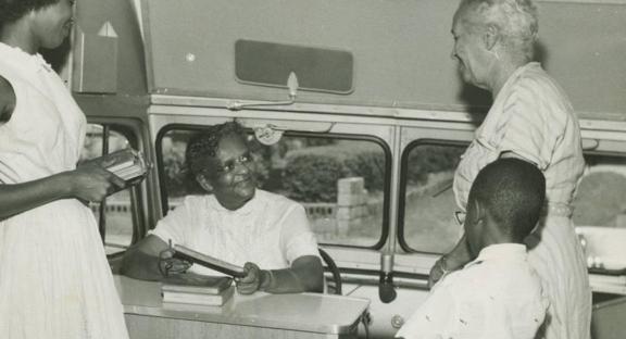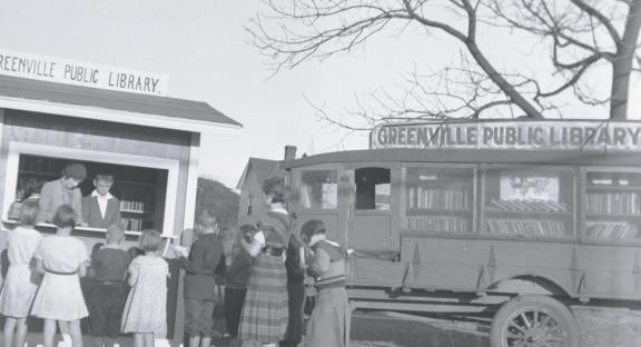 Although Greenville’s public libraries were segregated until 1960, Bookmobile service was provided to African-American schools beginning in 1924, increasing access for Black patrons who were not able to visit the Phillis Wheatley Center’s small library collection. Annie Watters McPheeters was hired as the first African-American Bookmobile librarian in 1934. After working in Greenville for two years, she became the first professional African-American librarian in the Atlanta Public Library System, where she oversaw three branches and worked for the integration of public libraries.