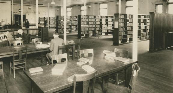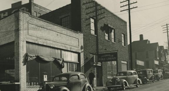 The Library opened on May 20, 1921 with 500 volumes in a vacant storage room on East Coffee Street in downtown Greenville and soon expanded into the space next door. The Library was so well received by the community that the City voted to provide tax support in 1923. The following year the library was moved to larger quarters in the Jervey Jordan building, which had entrances on both Main Street and Brown Street in downtown Greenville. (Image from the South Carolina Room Collection)