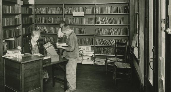 The Greer Library, founded in the fall of 1925, was the first Library branch in the County. Then in 1938, Greer became the first community to erect its own building, the Davenport Memorial Library on School Street. This new building featured a gathering place that was used by local clubs, including the USO during World War II. This meeting space later became the children's room as the branch’s collection grew. (Image from the South Carolina Room Collection)