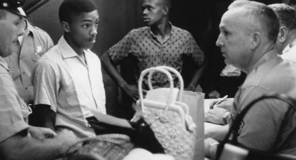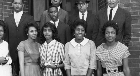 On July 16, 1960, seven students from Sterling High along with college freshman, Jesse Jackson, entered the library and were arrested. This group became known as 'The Greenville 8'. (Image from the James Wilson Photograph Collection, courtesy of the Upcountry History Museum)