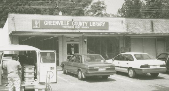 To meet the growing needs of the community, in 1993, the Greenville County Council approved an ordinance to replace nine existing library branches, replace the main library in downtown Greenville, and construct a new library for Woodruff Road. In September of 1995, the Greer Branch became the first of many free standing library buildings to be built or replaced. Other branches soon followed: Travelers Rest (1996), Simpsonville (1997), Berea (1998), Mauldin (1999), Fountain Inn (2002), Anderson Road (West Branch) (2003), Augusta Road (2004), and Taylors (2005). (Image from the South Carolina Room Collection)