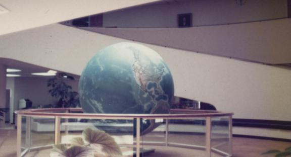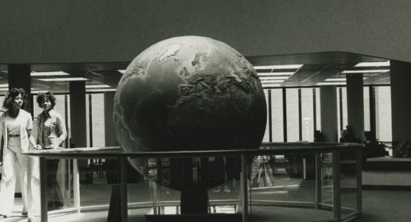 In September 1960, the Main Street Library integrated in response to the efforts of Greenville’s African-American community. See the Service for All exhibit below to find out more. During the 1960s, the Greenville City and County public library services were combined, tax millage was raised to provide adequate support, and funds were solicited to build a new library. The new building opened on May 25, 1970 on the site of the Greenville Woman’s College on College Street in downtown Greenville. To the delight of library visitors, the City's first specially built library facility featured the recently donated Hollingsworth-Magill Memorial Globe. (Image from the South Carolina Room Collection)