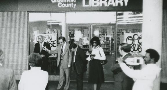 In the 1970s, the community’s growth created a need for more library branches. The Berea Branch was established on November 1, 1971 and was soon followed the Taylors Branch on November 20, 1973. On July 5, 1975, the West Branch opened in a storefront at the corner of Easley Bridge Road and West Washington Avenue. (Image from the South Carolina Room Collection)